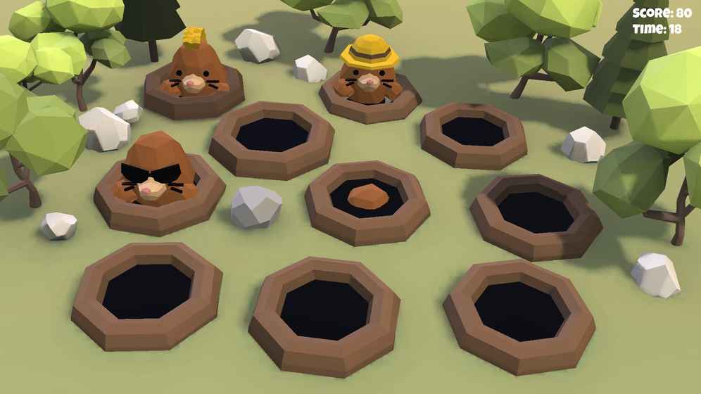 狂点三地鼠这款游戏是一款3D版的打地鼠游戏,在这个游戏中玩家朋友们可以体验这个超棒的游戏乐趣,感兴趣的朋友们可以来玩玩看哟,快来下载吧!
