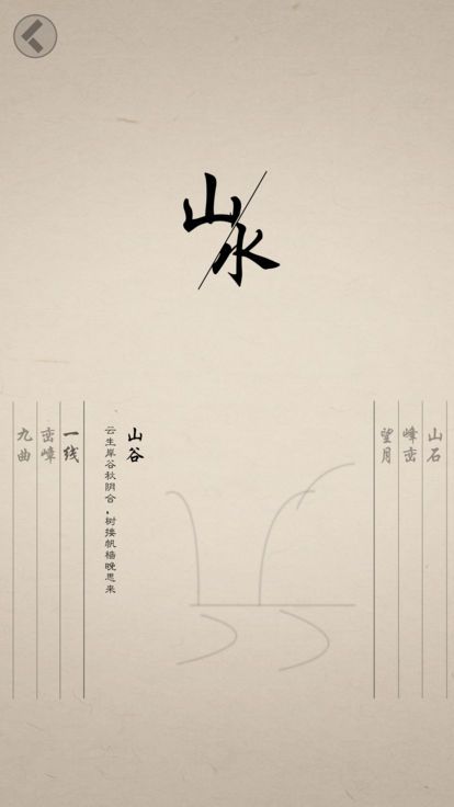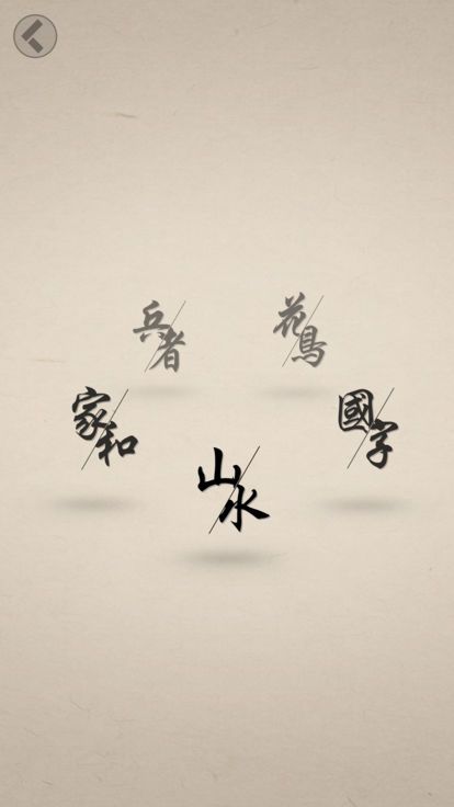 游戏由山水,国字,花鸟,兵者,家和五大意境构成,每个意境包含多个主题。多达20多种关卡,任你挑战。