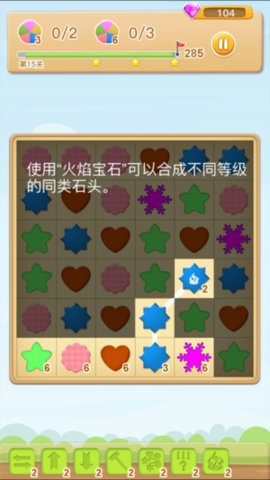 上古时期女娲为补南天门空缺,炼制五色神石用来弥补天宫空洞,但是炼制五彩神石的方法十分的艰难,需要不断的千锤百炼,不断的压缩提纯,最后得到美丽的神石,这款精彩有趣的游戏,玩法十分的简单,寻找颜色相同的三颗神石就能达到消除的效果,将所有的神石聚集到一起然后消除,消除得越多分值越高,达到一定的分值就能过关!