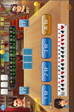 游戏玩法介绍:三人一组,开始发17张牌,随后叫地主和抢地主,抢到地主的玩家再发三张牌,然后地主先出牌,直到有一个玩家打完所有的牌即可获得胜利。玩法简单,让你在闲暇时可以有一个轻松愉悦的游戏体验,希望您能喜欢我们的游