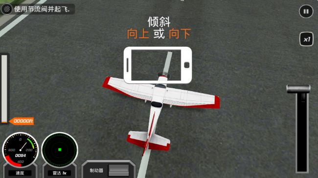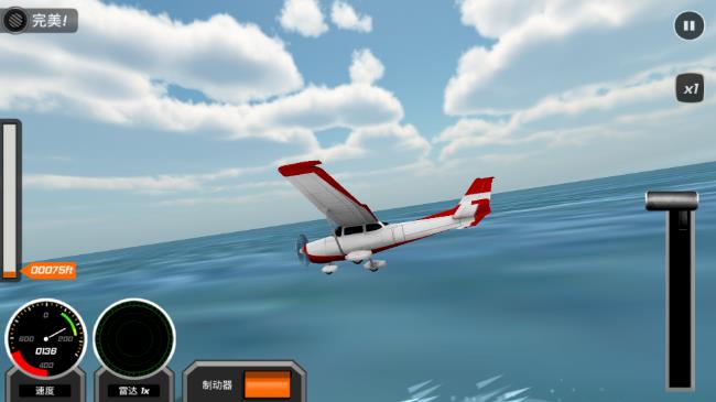 飞行中:使用重力感应操作方向和升高、降低飞机,部分飞机比如战斗机可以空中翻转;