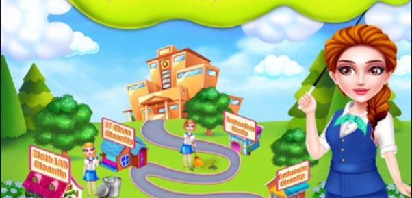 有趣的教育游戏,让青少年清洁学校,培养做家务的习惯。
