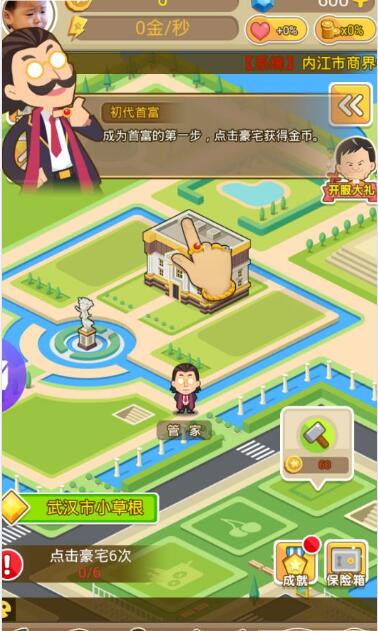 丰富多彩的卡通画风,在没有金钱时可以不断点击别墅产出金币哦,而且别墅升级后产出金币更多哦;