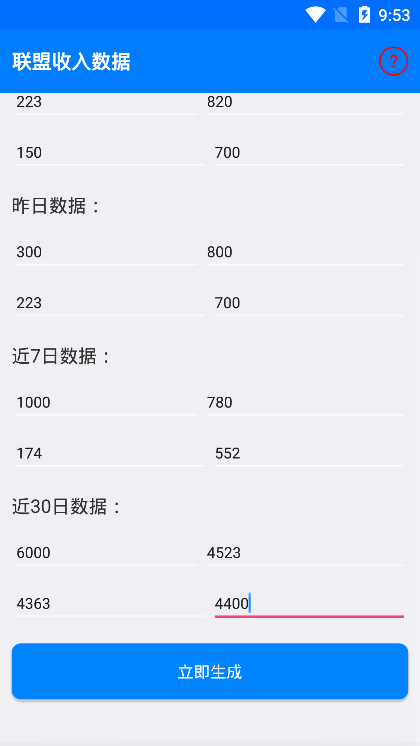 联盟收入生成:输入可提现金额、预估收入、点击数等数据,立即生成装X收入图。