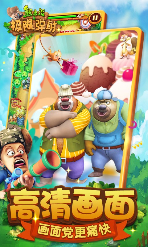熊出没之极限弹射是一款休闲弹射类手机游戏,Q版的角色形象设计,真实还原动画色彩,熊出没之极限弹射,在游戏中,有多种子弹供玩家选择,唯美造型,以幽静的森林为背景,熊大来保护家园了,无尽关卡,冒险超级刺激,高清极致画面,精致视觉体验。