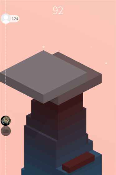 玩家需要看准时机点屏幕,让移动中的方块落下与下方的方块重合。未重合的部分便会被削下去。所以可以重合的部分越来越小,难度也就随之增加,直到完全没有重合,游戏结束。