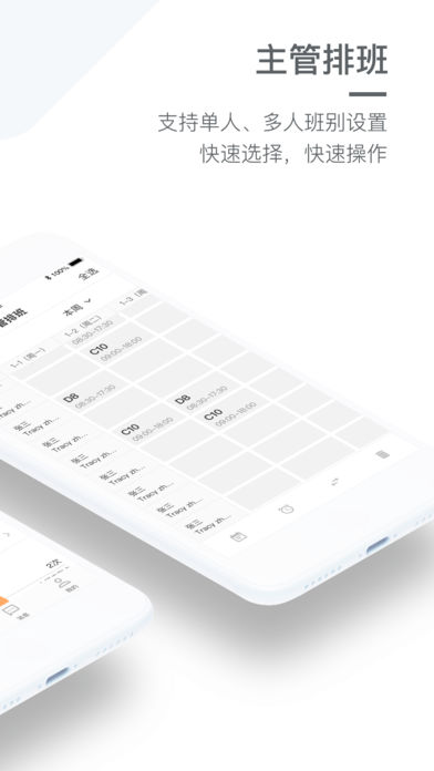 主管排班:支持单人、多人班别设置,快速选择,快速操作