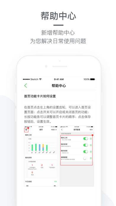 4.迟到、早退、漏打卡等出勤异常实时推送、快速申诉,提前解决问题