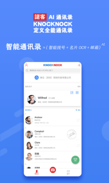 Knocknock 诺客app是一款非常好用的智能通讯录工具,对于商务上的通讯交流有着极大的帮助。Knocknock 诺客app通过强大的人工智能对通讯录进行识别管理,有效提升商务人士的沟通效率,感兴趣的朋友赶紧下载体验吧。