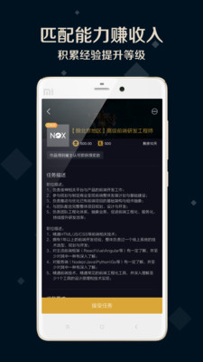 1、很好用的软件,闲下来的时候可以打发时间 真的不错光子加油目前夜神猎人平台汇聚了创意设计、营销推广、程序开发、翻译写作等各类专业人才,人才通过平台参与竞标、组队完成工作、跟进历史进度,高速完成任务并获得匹配收益,最大化人才的力量。