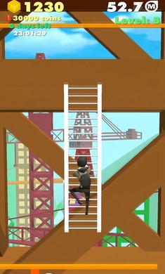 火柴人攀爬侠无敌版是一款画面简约的火柴人题材的攀爬类敏捷闯关休闲手游,游戏中玩家将控制一个火柴人在一个个梯子上面攀爬,如果到达顶部可以获得宝箱收集金币,注意一些移动的梯子和移动的红色方块。