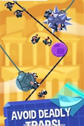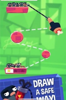 你将会帮助一群强盗来利用特制的橡胶抓钩来到达目的地,在关卡中会有不同的障碍等你来挑战。