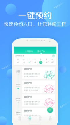 1、一键预约顾客。工作进度实时掌握,消息自动提醒
