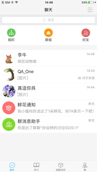 聊天:即时通讯,线上沟通,群组织商讨,聊天消息已读未读尽在掌握;
