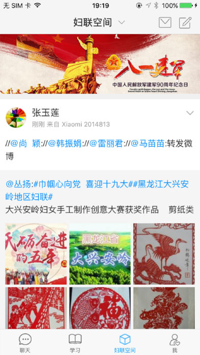 妇联空间:妇联各级领导干部工作生活交流的空间;