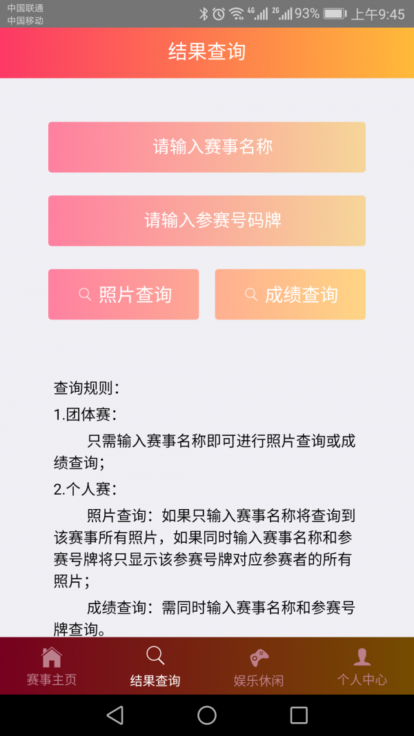 本款应用主要功能用于发布比赛信息,报名参赛,比赛签到,成绩查询,照片展示,比赛收藏,照片收藏,个人信息,应用介绍,休闲娱乐小游戏,成绩排名等功能。本款应用能够让用户有很好的渠道能够及时地参与自己感兴趣的地区赛事,与家人好友一道,既锻炼身体,又放松身心,增进感情,达到与本应用宗旨“让运动更快乐”