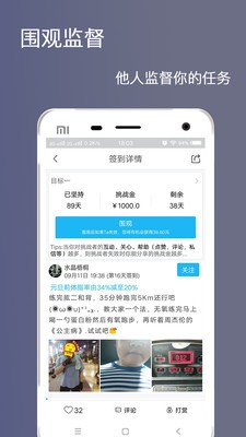 在这里你可以挑战自我,达成你的每一个计划或目标,也可以监督和围观别人的计划、目标获得收益。