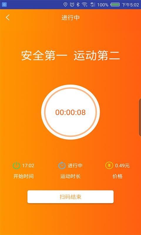 用户可扫描二维码开始健身或结束健身,结束后可通过支付宝、微信、余额等三种方式进行支付。