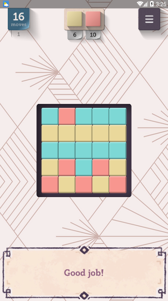 3、我们有一个带有正方形颜色的网格。我们的想法是收集两个或多个相同颜色的正方形并点击它们以消除它们。在每次任务中,我们都必须收集某些颜色。当我们设法同时聚集多个方块时,我们会得到油漆或墙纸的立方体,并且通过它们,我们可以通过一次触摸消除更多的方块。
