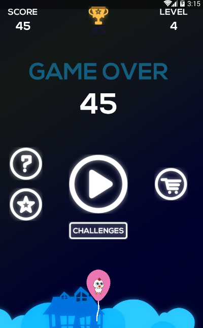 保护小鸡上升是一款趣味休闲类手游,画风十分魔性,玩法类似保护气球上升,在保护小鸡上升手游中,玩家通过操控一个气球里的小鸡不断飞上天空,灵活进行向左或向右的移动,来躲避障碍物,顺利到达终点。