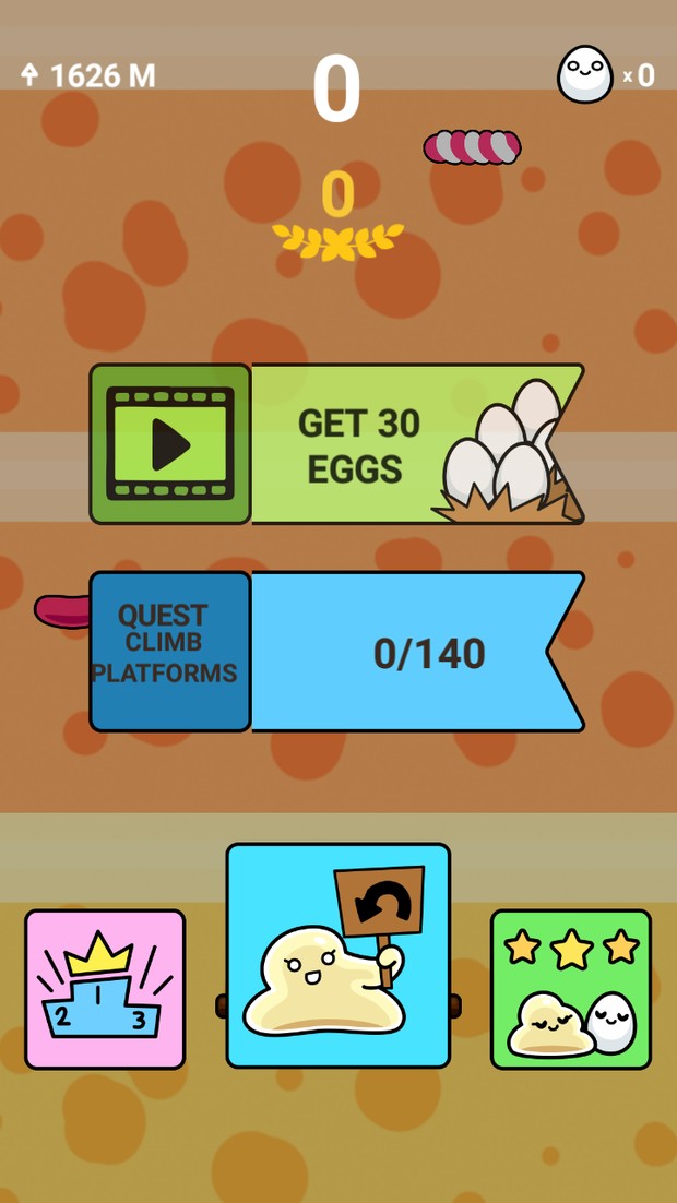 向上跳!蛋白是一款根据重力感应操控蛋白向上跳跃的休闲类手机游戏,采取魔性的角色设计为玩家营造了轻松诙谐的游戏氛围,在向上跳!蛋白手游中,操控鸡蛋白不断往上跳跃,安全进入下一个平台,并收集路途中的鸡蛋,勇争排行榜吧!