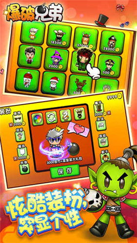 给你的形象进行个性化的装扮,戴上礼帽,对其它玩家打招呼,做鬼脸!精心设计的炸弹特效,让你立刻与众不同。