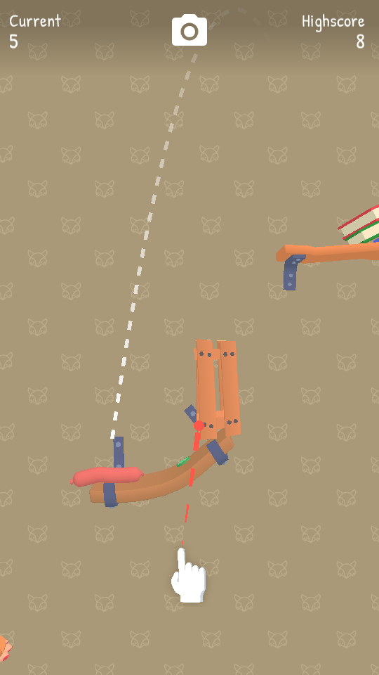 3、如果能够让香肠每次都落到上面的物体上面,香肠就可以一直前进,后的的分数奖励也越来,还可以看到更多有趣的造型摆设。