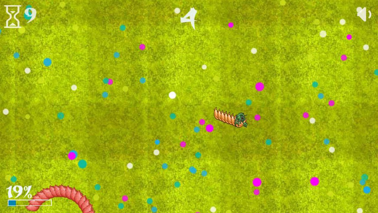2、可以多人竞技着玩,每个都可以操控一条这样的虫子,在同一个草坪上竞争食物,但是彼此之间又不能触碰。