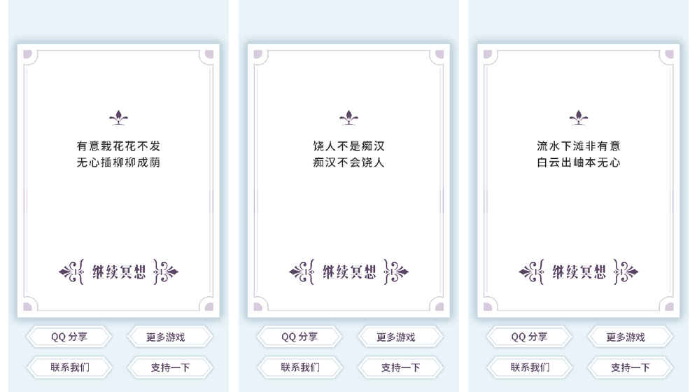 倒是想到另外一个游戏,只有两三兆,就让你看着一些(好像有100个?)小图案选一个,然后换一组问“是不是在这里面呢?”最后有个转盘出来,指针最后停下的地方就是一开始选定的那个。真的超准啊,从来没有出过错,虽然后来听说是有个什么算法在里面,不过还是觉得好神奇。换了手机忘了名字啦?而且具体玩法也不怎么记得清楚了
