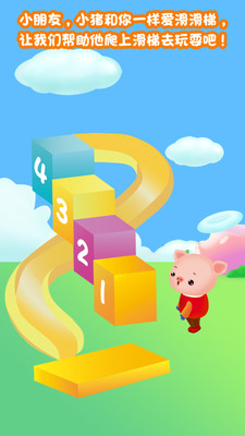 儿童宝宝总是喜欢滑滑梯的,所以我们在游戏中加入了一只可爱的小猪,同时我们又在游戏中加入了认知色彩,认知事物,拼图等简单但是增强智力的小游戏,每过一关就会在滑梯上网上走一步,直到过完了所有关卡,就会爬到最高处,然后从话题的最高处滑下来。