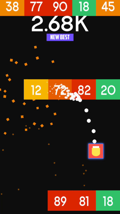 首先,这个游戏操作很简单,你需要控制一个不断前进的方块,用子弹为自己开除一条路来。在这个过程中,避免撞到其他方块,如果你看见了一个白色小圆圈,里面画着三颗子弹等的图案。那么恭喜你,你所见的就是这款游戏的道具,吃了它,事半功倍,能消灭更多的坏方块。你走的越多呢,难度越大,后面的那些需要三下,四下的方块建议不要移动,就打一个,挑少的打。如果看见了道具,除非手速快也不要去吃。