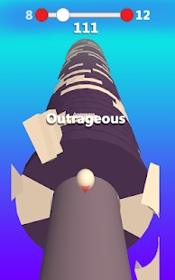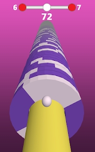 控制着球在螺旋塔上不断的前进,在光盘转到白色的区域时,点击屏幕控制着球去撞击光盘,还有着彩色的区域,玩家可以连续破开多层光盘。