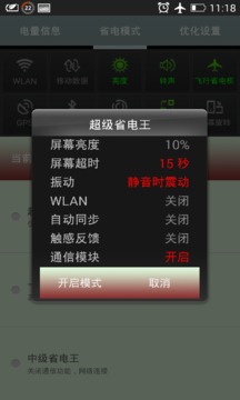 5、电池专家可以通过管理手机网络、通信模块、屏幕亮度等高能耗设置来减少电量的流失