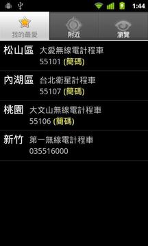 呼叫小黄 ★ 收集台湾各地区出租车行列表, 让您可以轻松呼叫小黄★ 让您在离峰时段和郊区也不怕叫不到车, 在尖峰时段提供您更多选择★ 评价功能, 鼓励好的或抵制不良的车队和司机★ 妇女安全功能, 传送乘车记录给关心您安全的亲友 浏览车行数据时按右上方的星星即可加入我的*爱如有未列到的车行, 欢迎使用新增功能分享给大家 (有些人反映升级之后首页图示无法使用, 只要重新将图示拖曳到桌面就可以了)