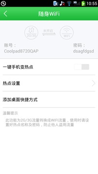 一键变随身wifi: 独特设计,让您的手机变成随身的无线网络,妈妈再也不用担心我没有网络啦