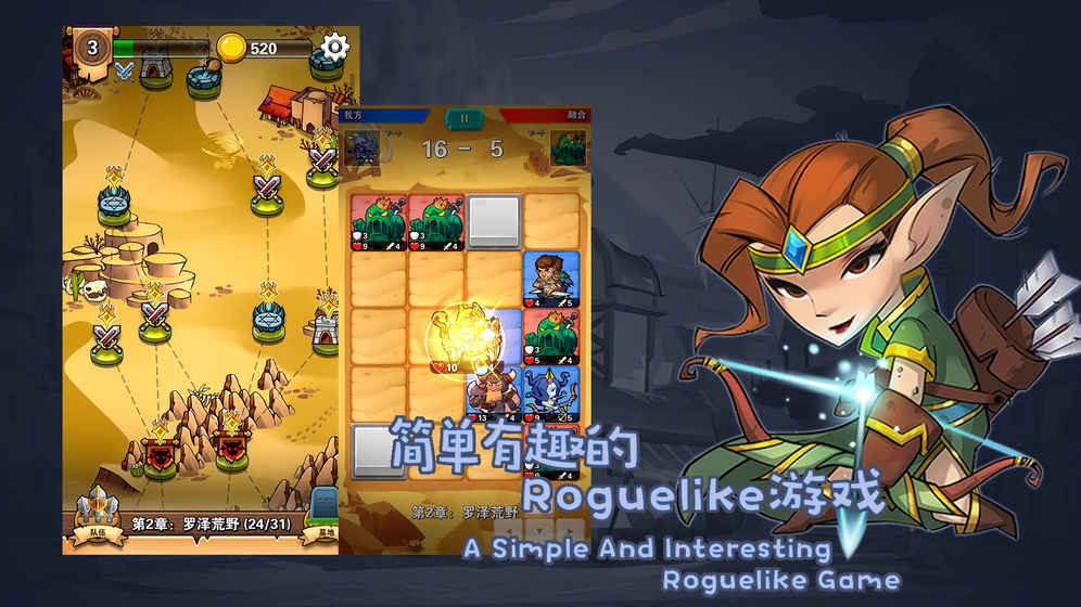 游戏一开始你就可以选择喜欢的游戏队伍属性(近战、射手、法术、普通)进入战斗剧情,在4大地图中随机触发100多个策略战斗关卡,路上随机出现雇佣旅店、复活祭坛、宝箱、训练场,不止如此,战斗中随机出现多种事件,可以体验到意想不到的惊喜!
