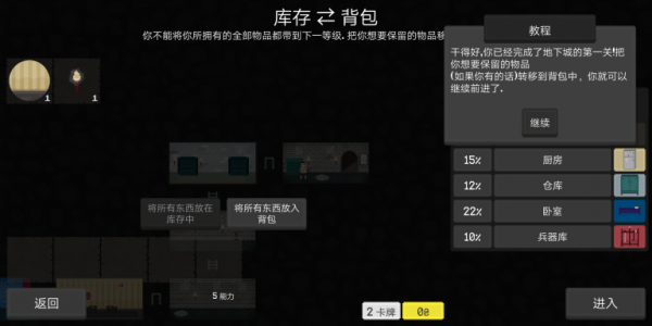 2、房间策略:前期道具不足,一定先保证饱食度和生命值,免得饿死或者挂掉,然后寻找武器,提高战斗力;