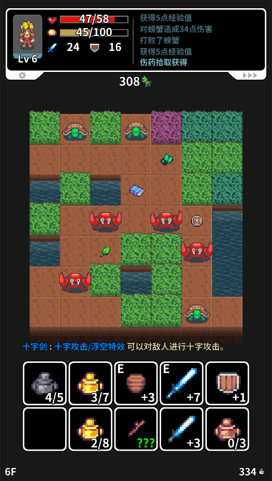 2、不断除草,拾取道具,消灭魔物。