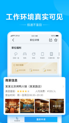 【求职更高效】智能算法为用户推荐更合适的工作,离家近待遇好。超快的沟通速度,9成求职者在3天内接到店家电话。