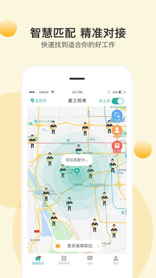 自由灵活赚钱。平台基于位置,岗位特点、特长、诚信档案等大数据做智能匹配和推荐,雇主在较短时间内找到合适的雇员,雇员自由灵活的将单位时间的价值提高。