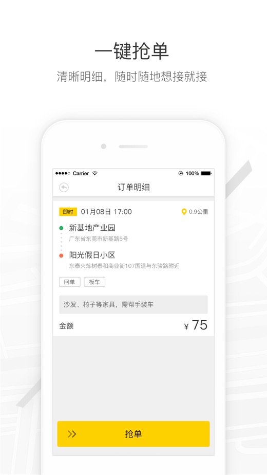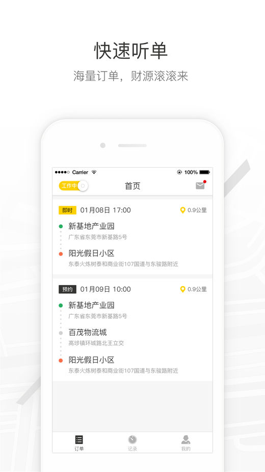 派单模式:通过手机轻松获得订单,信息清晰明了