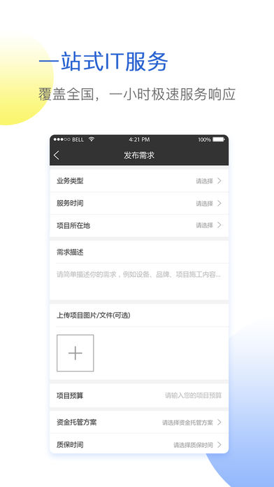 云闪蝠是一个提供专业IT服务的平台,雇主在平台发布IT项目需求,网络工程师与施工团队承接项目进行服务。目前平台服务覆盖全国,有20000+工程师、200多个施工团队随需而动,高效服务。