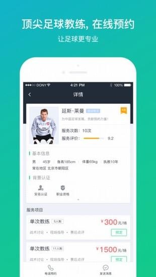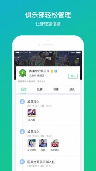 是一款专注于健身服务的移动软件,主要面向于健身俱乐部和足球球员。实现了大量管理功能,旨在帮助俱乐部便捷管理部门;同时在中用户们带能在线预订足球馆、预预约教和裁判等。