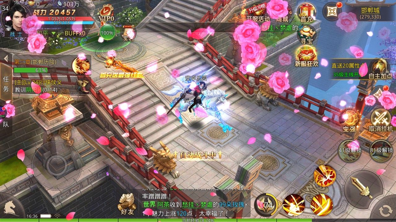 角色自由分配属性,打造你的专属角色,轻松挂机升级,神兵在手称霸全服。