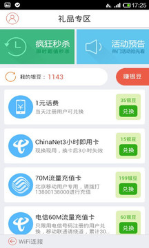 5.银豆兑换功能,丰富礼品免费领取,话费,兑换卷,时长卡应有尽有。