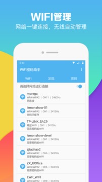 WiFi密码助手是一款可以免费管理WiFi密码的,可以自行手写输入WiFi密码也可以直接获取到当前设备曾经连接过的所有WiFi名称和密码,再也不用害怕密码遗忘。且可以一键分享WiFi给到好友,实现WiFi共联。还有信号增强、测速、防蹭网等WiFi相关功能。还能一键连接免费上网哟~