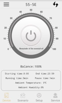 百芬扩香仪是一款空气清香设备,通过该app添加设备可以远程控制扩香仪设备的工作(开始,结束,运行时长,检测周围环境的温度和湿度等),方便用户的使用。