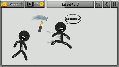 每次击中火柴人都有金币和得分