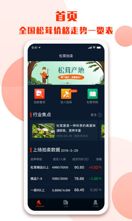 松茸拍卖是一款手机购物服务软件,可实现买家线上APP参拍、卖家线上货品管理、现场运营管理,在软件上了解到最新的松茸价格走势以及有关于松茸的各类相关资讯,喜欢的快来下载吧!