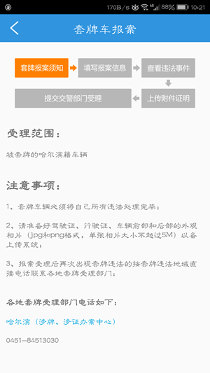 为规范哈尔滨市道路交通安全违法行为举报奖励工作,鼓励市民积极参与交通违法行为治理,哈市交警部门创建交通违法“随手拍”举报平台,5月1日12时起,平台开始试运行,市民手机下载“”手机APP客户端后,通过其中的“随手拍”功能,即可向交警部门举报逆行、闯红灯、违法停车、随意乱变道、违反禁令标志、违反禁止标线、占用专用车道等交通违法行为。